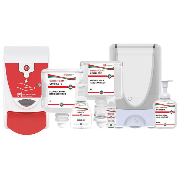 InstantFOAM® Complete SKU: WC-10845 Ship to Select country United Kingdom of Great Britain and Northern Ireland United States of America Afghanistan Åland Islands Albania Algeria American Samoa Andorra Angola Anguilla Antarctica Antigua and Barbuda Argentina Armenia Aruba Austria Azerbaijan Bahamas Bahrain Bangladesh Barbados Belarus Belgium Belize Benin Bermuda Bhutan Bolivia (Plurinational State of) Bonaire, Sint Eustatius and Saba Bosnia and Herzegovina Botswana Bouvet Island Brazil British Indian Ocean Territory Brunei Darussalam Bulgaria Burkina Faso Burundi Cabo Verde Cambodia Cameroon Canada Cayman Islands Central African Republic Chad Chile China Christmas Island Cocos (Keeling) Islands Colombia Comoros Congo Congo (Democratic Republic of the) Cook Islands Costa Rica Côte d'Ivoire Croatia Cuba Curaçao Cyprus Czechia Denmark Djibouti Dominica Dominican Republic Ecuador Egypt El Salvador Equatorial Guinea Eritrea Estonia Eswatini Ethiopia Falkland Islands (Malvinas) Faroe Islands Fiji Finland France French Guiana French Polynesia French Southern Territories Gabon Gambia Georgia Germany Ghana Gibraltar Greece Greenland Grenada Guadeloupe Guam Guatemala Guernsey Guinea Guinea-Bissau Guyana Haiti Heard Island and McDonald Islands Holy See Honduras Hong Kong Hungary Iceland India Indonesia Iran (Islamic Republic of) Iraq Ireland Isle of Man Israel Italy Jamaica Japan Jersey Jordan Kazakhstan Kenya Kiribati Korea (Democratic People's Republic of) Korea (Republic of) Kuwait Kyrgyzstan Lao People's Democratic Republic Latvia Lebanon Lesotho Liberia Libya Liechtenstein Lithuania Luxembourg Macao Madagascar Malawi Malaysia Maldives Mali Malta Marshall Islands Martinique Mauritania Mauritius Mayotte Mexico Micronesia (Federated States of) Moldova (Republic of) Monaco Mongolia Montenegro Montserrat Morocco Mozambique Myanmar Namibia Nauru Nepal Netherlands New Caledonia New Zealand Nicaragua Niger Nigeria Niue Norfolk Island North Macedonia Northern Mariana Islands Norway Oman Pakistan Palau Palestine, State of Panama Papua New Guinea Paraguay Peru Philippines Pitcairn Poland Portugal Puerto Rico Qatar Réunion Romania Russian Federation Rwanda Saint Barthélemy Saint Helena, Ascension and Tristan da Cunha Saint Kitts and Nevis Saint Lucia Saint Martin (French part) Saint Pierre and Miquelon Saint Vincent and the Grenadines Samoa San Marino Sao Tome and Principe Saudi Arabia Senegal Serbia Seychelles Sierra Leone Singapore Sint Maarten (Dutch part) Slovakia Slovenia Solomon Islands Somalia South Africa South Georgia and the South Sandwich Islands South Sudan Spain Sri Lanka Sudan Suriname Svalbard and Jan Mayen Sweden Switzerland Syrian Arab Republic Taiwan, Province of China Tajikistan Tanzania, United Republic of Thailand Timor-Leste Togo Tokelau Tonga Trinidad and Tobago Tunisia Turkey Turkmenistan Turks and Caicos Islands Tuvalu Uganda Ukraine United Arab Emirates United States Minor Outlying Islands Uruguay Uzbekistan Vanuatu Venezuela (Bolivarian Republic of) Vietnam Virgin Islands (British) Virgin Islands (U.S.) Wallis and Futuna Western Sahara Yemen Zambia Zimbabwe * Other * Shipping Method Name Estimated Delivery Price No shipping options Apply Email a friend Alcohol-Based Foam Hand Sanitiser \n \n \nBactericidal · Virucidal · Yeasticidal · Mycobactericidal \n \n \nUse biocides safely. Always read the label and product information before use. \n \n \n \nWhere to use: For use in any hygiene sensitive environment, or where higher levels of hand hygiene are required. \n \n Complete broad spectrum activity - Highly effective formula kills 99.999% of many common germs and is fully tested and proven to be bactericidal, virucidal, yeasticidal and mycobactericidal. \n Instant foam action - dispensed as a foam - Rapidly and easily rubs across hands, providing the user with complete control of the product, preventing the dripping and splashing associated with using liquid alcohol sanitisers. \n Does not contain gelling agents - Unlike alcohol gel sanitisers, the product does not contain gelling agents that leave the hands feeling sticky, particularly after multiple use. \n Pleasant to use - The rich foam is extremely pleasant for frequent use in-between hand washing, encouraging maximum compliance. \n Perfume-Free and Dye-Free - No added perfume or dyes. Ideal for people who are sensitive to perfumes and dyes and who prefer products which do not have these added. Clinically proven skin friendly formula -Independently tested and proven to prevent skin dryness even after frequent use. \n Skin Hypoallergenic - Formulated to have low allergic potential to the skin and assessed by an independent toxicologist to be declared as “Skin Hypoallergenic”. \n Awarded with the quality seal ECARF - Ideal for persons suffering from allergies and suitable for sensitive and eczema-prone skin. \n Suitable for food facilities - Product has been independently evaluated and trace amounts of the product are not expected to cause adverse toxicological effects. Food handlers should use product only in accordance with label instructions and product should not come directly into contact with food or items that contain food. \n No mess - Does not clog pumps or splash and drip on surrounding floor and wall surfaces as associated with liquid and gel sanitisers. \n No water required - Quickly dries on hands without the need for rinsing with water. Ideal for use outside the washroom at the point of need. \n Convenient - Available in a range of sizes for use in different healthcare, workplace and public environments. \n Glove compatible - Suitable for use with latex, vinyl and nitrile gloves. \n