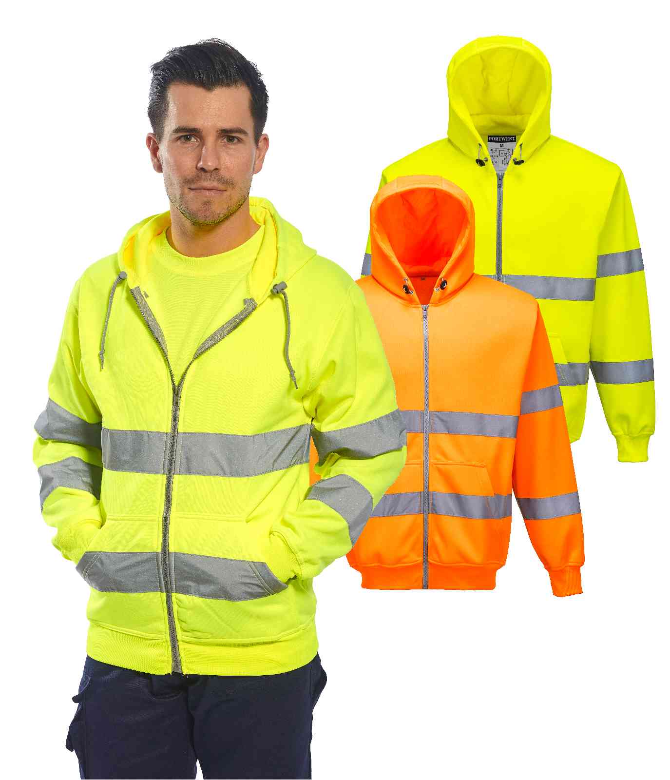 Portwest B305 Hi-Vis Zip Front Hoodie SKU: WC-6538 Ship to Select country United Kingdom of Great Britain and Northern Ireland United States of America Afghanistan Åland Islands Albania Algeria American Samoa Andorra Angola Anguilla Antarctica Antigua and Barbuda Argentina Armenia Aruba Austria Azerbaijan Bahamas Bahrain Bangladesh Barbados Belarus Belgium Belize Benin Bermuda Bhutan Bolivia (Plurinational State of) Bonaire, Sint Eustatius and Saba Bosnia and Herzegovina Botswana Bouvet Island Brazil British Indian Ocean Territory Brunei Darussalam Bulgaria Burkina Faso Burundi Cabo Verde Cambodia Cameroon Canada Cayman Islands Central African Republic Chad Chile China Christmas Island Cocos (Keeling) Islands Colombia Comoros Congo Congo (Democratic Republic of the) Cook Islands Costa Rica Côte d'Ivoire Croatia Cuba Curaçao Cyprus Czechia Denmark Djibouti Dominica Dominican Republic Ecuador Egypt El Salvador Equatorial Guinea Eritrea Estonia Eswatini Ethiopia Falkland Islands (Malvinas) Faroe Islands Fiji Finland France French Guiana French Polynesia French Southern Territories Gabon Gambia Georgia Germany Ghana Gibraltar Greece Greenland Grenada Guadeloupe Guam Guatemala Guernsey Guinea Guinea-Bissau Guyana Haiti Heard Island and McDonald Islands Holy See Honduras Hong Kong Hungary Iceland India Indonesia Iran (Islamic Republic of) Iraq Ireland Isle of Man Israel Italy Jamaica Japan Jersey Jordan Kazakhstan Kenya Kiribati Korea (Democratic People's Republic of) Korea (Republic of) Kuwait Kyrgyzstan Lao People's Democratic Republic Latvia Lebanon Lesotho Liberia Libya Liechtenstein Lithuania Luxembourg Macao Madagascar Malawi Malaysia Maldives Mali Malta Marshall Islands Martinique Mauritania Mauritius Mayotte Mexico Micronesia (Federated States of) Moldova (Republic of) Monaco Mongolia Montenegro Montserrat Morocco Mozambique Myanmar Namibia Nauru Nepal Netherlands New Caledonia New Zealand Nicaragua Niger Nigeria Niue Norfolk Island North Macedonia Northern Mariana Islands Norway Oman Pakistan Palau Palestine, State of Panama Papua New Guinea Paraguay Peru Philippines Pitcairn Poland Portugal Puerto Rico Qatar Réunion Romania Russian Federation Rwanda Saint Barthélemy Saint Helena, Ascension and Tristan da Cunha Saint Kitts and Nevis Saint Lucia Saint Martin (French part) Saint Pierre and Miquelon Saint Vincent and the Grenadines Samoa San Marino Sao Tome and Principe Saudi Arabia Senegal Serbia Seychelles Sierra Leone Singapore Sint Maarten (Dutch part) Slovakia Slovenia Solomon Islands Somalia South Africa South Georgia and the South Sandwich Islands South Sudan Spain Sri Lanka Sudan Suriname Svalbard and Jan Mayen Sweden Switzerland Syrian Arab Republic Taiwan, Province of China Tajikistan Tanzania, United Republic of Thailand Timor-Leste Togo Tokelau Tonga Trinidad and Tobago Tunisia Turkey Turkmenistan Turks and Caicos Islands Tuvalu Uganda Ukraine United Arab Emirates United States Minor Outlying Islands Uruguay Uzbekistan Vanuatu Venezuela (Bolivarian Republic of) Vietnam Virgin Islands (British) Virgin Islands (U.S.) Wallis and Futuna Western Sahara Yemen Zambia Zimbabwe * Other * Shipping Method Name Estimated Delivery Price No shipping options Apply Email a friend For extra ease and versatility why not choose the B305 zipped hoodie. The ultimate package of practicality, strength and style. \n \n- Knitted fabric with brushed backing \n- Reflective tape for increased visibility \n- 50+ UPF rated fabric to block 98% of UV rays \n- Side access pockets \n- Front zip opening for easy access \n- Hood for added protection against the elements \n- Adjustable cord and toggle for a secure fit \n- Designed with a comfort fit \n- Certified to EN ISO 20471 after 50x washes \n- Complies with RIS 3279-TOM for rail industry (orange only) \n- CE certified \n- 2 pockets for secure storage \n \nColours: Yellow, Orange \n \nSizes: Reg S - 3XL \n \n- RIS-3279-TOM ISSUE 1 (ORANGE ONLY) \n- EN ISO 20471 Class 3 \n- GO/RT 3279 Issue 8 (orange only)