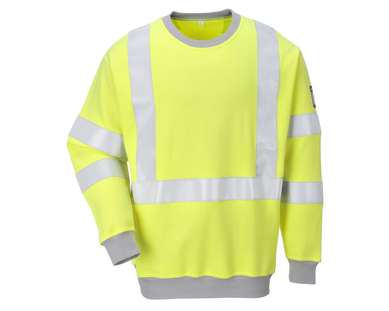 Portwest FR72 Flame Resistant Anti-Static Hi-Vis Sweatshirt SKU: WC-6800 Ship to Select country United Kingdom of Great Britain and Northern Ireland United States of America Afghanistan Åland Islands Albania Algeria American Samoa Andorra Angola Anguilla Antarctica Antigua and Barbuda Argentina Armenia Aruba Austria Azerbaijan Bahamas Bahrain Bangladesh Barbados Belarus Belgium Belize Benin Bermuda Bhutan Bolivia (Plurinational State of) Bonaire, Sint Eustatius and Saba Bosnia and Herzegovina Botswana Bouvet Island Brazil British Indian Ocean Territory Brunei Darussalam Bulgaria Burkina Faso Burundi Cabo Verde Cambodia Cameroon Canada Cayman Islands Central African Republic Chad Chile China Christmas Island Cocos (Keeling) Islands Colombia Comoros Congo Congo (Democratic Republic of the) Cook Islands Costa Rica Côte d'Ivoire Croatia Cuba Curaçao Cyprus Czechia Denmark Djibouti Dominica Dominican Republic Ecuador Egypt El Salvador Equatorial Guinea Eritrea Estonia Eswatini Ethiopia Falkland Islands (Malvinas) Faroe Islands Fiji Finland France French Guiana French Polynesia French Southern Territories Gabon Gambia Georgia Germany Ghana Gibraltar Greece Greenland Grenada Guadeloupe Guam Guatemala Guernsey Guinea Guinea-Bissau Guyana Haiti Heard Island and McDonald Islands Holy See Honduras Hong Kong Hungary Iceland India Indonesia Iran (Islamic Republic of) Iraq Ireland Isle of Man Israel Italy Jamaica Japan Jersey Jordan Kazakhstan Kenya Kiribati Korea (Democratic People's Republic of) Korea (Republic of) Kuwait Kyrgyzstan Lao People's Democratic Republic Latvia Lebanon Lesotho Liberia Libya Liechtenstein Lithuania Luxembourg Macao Madagascar Malawi Malaysia Maldives Mali Malta Marshall Islands Martinique Mauritania Mauritius Mayotte Mexico Micronesia (Federated States of) Moldova (Republic of) Monaco Mongolia Montenegro Montserrat Morocco Mozambique Myanmar Namibia Nauru Nepal Netherlands New Caledonia New Zealand Nicaragua Niger Nigeria Niue Norfolk Island North Macedonia Northern Mariana Islands Norway Oman Pakistan Palau Palestine, State of Panama Papua New Guinea Paraguay Peru Philippines Pitcairn Poland Portugal Puerto Rico Qatar Réunion Romania Russian Federation Rwanda Saint Barthélemy Saint Helena, Ascension and Tristan da Cunha Saint Kitts and Nevis Saint Lucia Saint Martin (French part) Saint Pierre and Miquelon Saint Vincent and the Grenadines Samoa San Marino Sao Tome and Principe Saudi Arabia Senegal Serbia Seychelles Sierra Leone Singapore Sint Maarten (Dutch part) Slovakia Slovenia Solomon Islands Somalia South Africa South Georgia and the South Sandwich Islands South Sudan Spain Sri Lanka Sudan Suriname Svalbard and Jan Mayen Sweden Switzerland Syrian Arab Republic Taiwan, Province of China Tajikistan Tanzania, United Republic of Thailand Timor-Leste Togo Tokelau Tonga Trinidad and Tobago Tunisia Turkey Turkmenistan Turks and Caicos Islands Tuvalu Uganda Ukraine United Arab Emirates United States Minor Outlying Islands Uruguay Uzbekistan Vanuatu Venezuela (Bolivarian Republic of) Vietnam Virgin Islands (British) Virgin Islands (U.S.) Wallis and Futuna Western Sahara Yemen Zambia Zimbabwe * Other * Shipping Method Name Estimated Delivery Price No shipping options Apply Email a friend This inherently flame resistant sweatshirt is designed to give high visibility protection from every direction. Features include snug rib knit cuffs & hem to give a stylish, comfortable fit. \n \n- CE certified \n- Inherent flame resistant qualities will not diminish with washing \n- Protection against radiant, convective and contact heat \n- Premium flame resistant reflective tape \n- 50+ UPF rated fabric to block 98% of UV rays \n- Flame resistant ribbed cuff for added safety \n- High cotton content for superior comfort \n- Ribbed hem for a comfortable fit \n \nColours: Yellow \n \nSizes: Reg S - 3XL \n \n- EN 1149 -5 \n- EN ISO 11612 (A1. B1. C1. F1) \n- IEC 61482-2 IEC 61482-1-2 Class 1 \n- EN ISO 20471 Class 3 \n- ASTM F1959/F1959M-12 (ATPV=16 Cal/cm2 (HAF=86%))