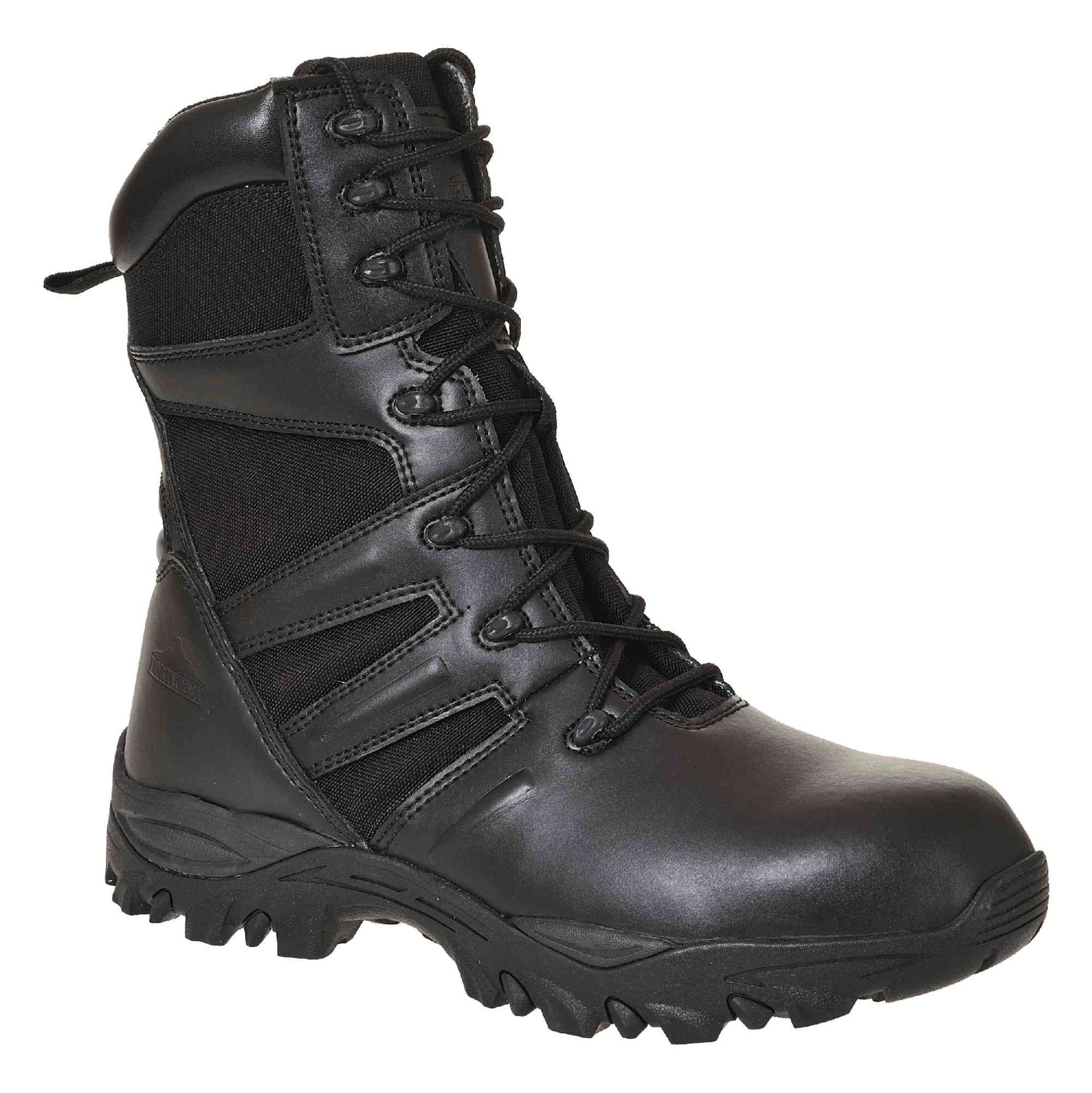 Portwest FW65 Steelite TaskForce Boot S3 HRO SKU: WC-9416 Ship to Select country United Kingdom of Great Britain and Northern Ireland United States of America Afghanistan Åland Islands Albania Algeria American Samoa Andorra Angola Anguilla Antarctica Antigua and Barbuda Argentina Armenia Aruba Austria Azerbaijan Bahamas Bahrain Bangladesh Barbados Belarus Belgium Belize Benin Bermuda Bhutan Bolivia (Plurinational State of) Bonaire, Sint Eustatius and Saba Bosnia and Herzegovina Botswana Bouvet Island Brazil British Indian Ocean Territory Brunei Darussalam Bulgaria Burkina Faso Burundi Cabo Verde Cambodia Cameroon Canada Cayman Islands Central African Republic Chad Chile China Christmas Island Cocos (Keeling) Islands Colombia Comoros Congo Congo (Democratic Republic of the) Cook Islands Costa Rica Côte d'Ivoire Croatia Cuba Curaçao Cyprus Czechia Denmark Djibouti Dominica Dominican Republic Ecuador Egypt El Salvador Equatorial Guinea Eritrea Estonia Eswatini Ethiopia Falkland Islands (Malvinas) Faroe Islands Fiji Finland France French Guiana French Polynesia French Southern Territories Gabon Gambia Georgia Germany Ghana Gibraltar Greece Greenland Grenada Guadeloupe Guam Guatemala Guernsey Guinea Guinea-Bissau Guyana Haiti Heard Island and McDonald Islands Holy See Honduras Hong Kong Hungary Iceland India Indonesia Iran (Islamic Republic of) Iraq Ireland Isle of Man Israel Italy Jamaica Japan Jersey Jordan Kazakhstan Kenya Kiribati Korea (Democratic People's Republic of) Korea (Republic of) Kuwait Kyrgyzstan Lao People's Democratic Republic Latvia Lebanon Lesotho Liberia Libya Liechtenstein Lithuania Luxembourg Macao Madagascar Malawi Malaysia Maldives Mali Malta Marshall Islands Martinique Mauritania Mauritius Mayotte Mexico Micronesia (Federated States of) Moldova (Republic of) Monaco Mongolia Montenegro Montserrat Morocco Mozambique Myanmar Namibia Nauru Nepal Netherlands New Caledonia New Zealand Nicaragua Niger Nigeria Niue Norfolk Island North Macedonia Northern Mariana Islands Norway Oman Pakistan Palau Palestine, State of Panama Papua New Guinea Paraguay Peru Philippines Pitcairn Poland Portugal Puerto Rico Qatar Réunion Romania Russian Federation Rwanda Saint Barthélemy Saint Helena, Ascension and Tristan da Cunha Saint Kitts and Nevis Saint Lucia Saint Martin (French part) Saint Pierre and Miquelon Saint Vincent and the Grenadines Samoa San Marino Sao Tome and Principe Saudi Arabia Senegal Serbia Seychelles Sierra Leone Singapore Sint Maarten (Dutch part) Slovakia Slovenia Solomon Islands Somalia South Africa South Georgia and the South Sandwich Islands South Sudan Spain Sri Lanka Sudan Suriname Svalbard and Jan Mayen Sweden Switzerland Syrian Arab Republic Taiwan, Province of China Tajikistan Tanzania, United Republic of Thailand Timor-Leste Togo Tokelau Tonga Trinidad and Tobago Tunisia Turkey Turkmenistan Turks and Caicos Islands Tuvalu Uganda Ukraine United Arab Emirates United States Minor Outlying Islands Uruguay Uzbekistan Vanuatu Venezuela (Bolivarian Republic of) Vietnam Virgin Islands (British) Virgin Islands (U.S.) Wallis and Futuna Western Sahara Yemen Zambia Zimbabwe * Other * Shipping Method Name Estimated Delivery Price No shipping options Apply Email a friend Designed for optimum wearer comfort, the EVA/ Rubber heat resistant cemented outsole is highly durable. The water resistant upper combined with the breathable inner lining ensures maximum comfort for the wearer even when worn for long durations. Suitable for military and security personnel. \n \n- CE certified \n- Protective steel toecap \n- Steel midsole \n- Anti-static footwear \n- Energy absorbing seat region \n- Water resistant upper to prevent water penetration \n- SRC - Slip resistant outsole to prevent slips and trips on ceramic and steel surfaces \n- Heat resistant outsole - 300°C \n- Fuel and oil resistant outsole \n- Dual density sole unit \n- Wide fitting \n- Protective steel toecap \n- Puncture resistant steel midsole \n- Static dissipative footwear (SD) \n \nASTM F2413-11 \nEN ISO 20345:2011