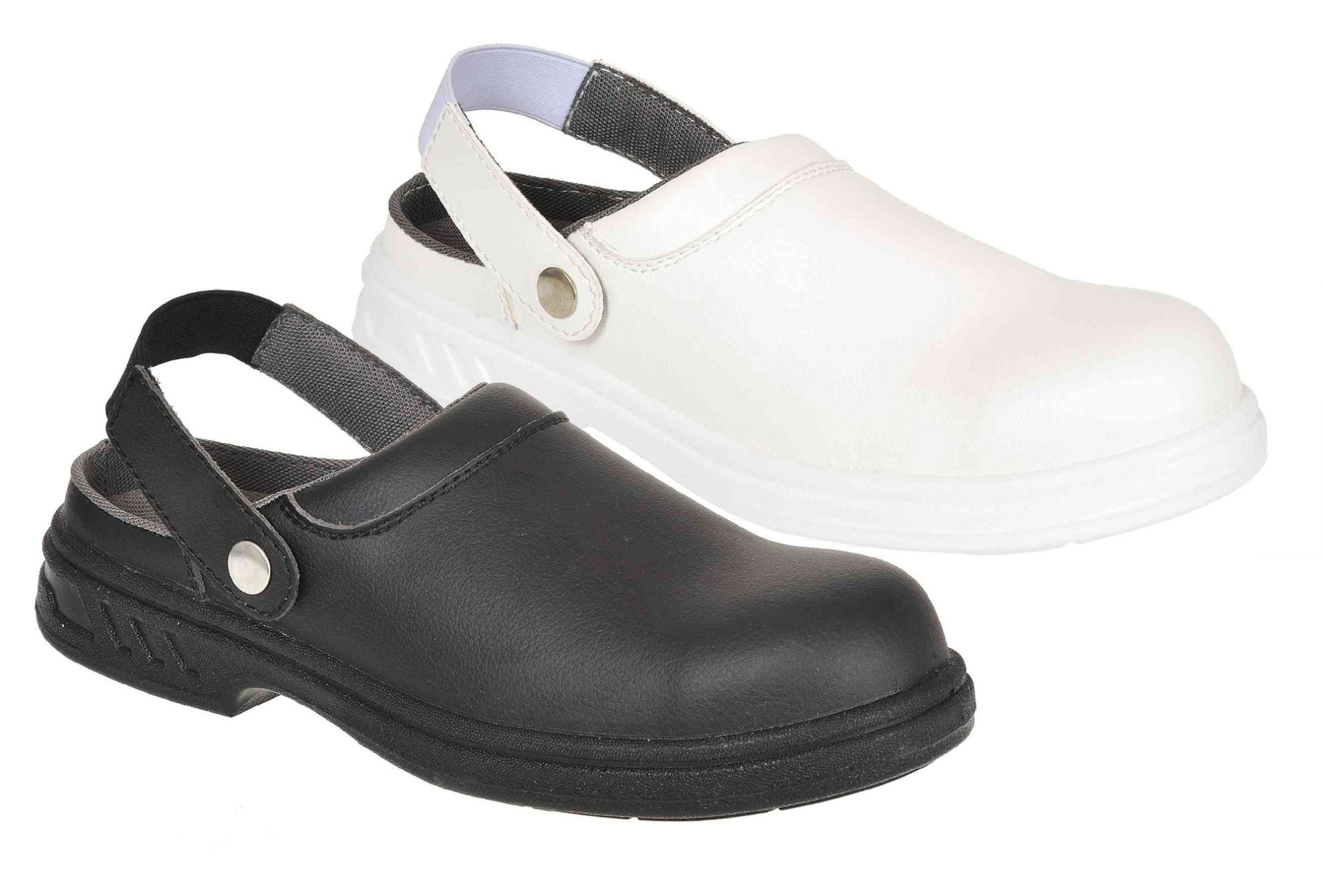 Portwest FW82 Steelite Safety Clog SB AE WRU SKU: WC-9466 Ship to Select country United Kingdom of Great Britain and Northern Ireland United States of America Afghanistan Åland Islands Albania Algeria American Samoa Andorra Angola Anguilla Antarctica Antigua and Barbuda Argentina Armenia Aruba Austria Azerbaijan Bahamas Bahrain Bangladesh Barbados Belarus Belgium Belize Benin Bermuda Bhutan Bolivia (Plurinational State of) Bonaire, Sint Eustatius and Saba Bosnia and Herzegovina Botswana Bouvet Island Brazil British Indian Ocean Territory Brunei Darussalam Bulgaria Burkina Faso Burundi Cabo Verde Cambodia Cameroon Canada Cayman Islands Central African Republic Chad Chile China Christmas Island Cocos (Keeling) Islands Colombia Comoros Congo Congo (Democratic Republic of the) Cook Islands Costa Rica Côte d'Ivoire Croatia Cuba Curaçao Cyprus Czechia Denmark Djibouti Dominica Dominican Republic Ecuador Egypt El Salvador Equatorial Guinea Eritrea Estonia Eswatini Ethiopia Falkland Islands (Malvinas) Faroe Islands Fiji Finland France French Guiana French Polynesia French Southern Territories Gabon Gambia Georgia Germany Ghana Gibraltar Greece Greenland Grenada Guadeloupe Guam Guatemala Guernsey Guinea Guinea-Bissau Guyana Haiti Heard Island and McDonald Islands Holy See Honduras Hong Kong Hungary Iceland India Indonesia Iran (Islamic Republic of) Iraq Ireland Isle of Man Israel Italy Jamaica Japan Jersey Jordan Kazakhstan Kenya Kiribati Korea (Democratic People's Republic of) Korea (Republic of) Kuwait Kyrgyzstan Lao People's Democratic Republic Latvia Lebanon Lesotho Liberia Libya Liechtenstein Lithuania Luxembourg Macao Madagascar Malawi Malaysia Maldives Mali Malta Marshall Islands Martinique Mauritania Mauritius Mayotte Mexico Micronesia (Federated States of) Moldova (Republic of) Monaco Mongolia Montenegro Montserrat Morocco Mozambique Myanmar Namibia Nauru Nepal Netherlands New Caledonia New Zealand Nicaragua Niger Nigeria Niue Norfolk Island North Macedonia Northern Mariana Islands Norway Oman Pakistan Palau Palestine, State of Panama Papua New Guinea Paraguay Peru Philippines Pitcairn Poland Portugal Puerto Rico Qatar Réunion Romania Russian Federation Rwanda Saint Barthélemy Saint Helena, Ascension and Tristan da Cunha Saint Kitts and Nevis Saint Lucia Saint Martin (French part) Saint Pierre and Miquelon Saint Vincent and the Grenadines Samoa San Marino Sao Tome and Principe Saudi Arabia Senegal Serbia Seychelles Sierra Leone Singapore Sint Maarten (Dutch part) Slovakia Slovenia Solomon Islands Somalia South Africa South Georgia and the South Sandwich Islands South Sudan Spain Sri Lanka Sudan Suriname Svalbard and Jan Mayen Sweden Switzerland Syrian Arab Republic Taiwan, Province of China Tajikistan Tanzania, United Republic of Thailand Timor-Leste Togo Tokelau Tonga Trinidad and Tobago Tunisia Turkey Turkmenistan Turks and Caicos Islands Tuvalu Uganda Ukraine United Arab Emirates United States Minor Outlying Islands Uruguay Uzbekistan Vanuatu Venezuela (Bolivarian Republic of) Vietnam Virgin Islands (British) Virgin Islands (U.S.) Wallis and Futuna Western Sahara Yemen Zambia Zimbabwe * Other * Shipping Method Name Estimated Delivery Price No shipping options Apply Email a friend This lightweight microfibre style offers superb close fit and comfort in a clog design with a detachable back strap. \n \n- CE certified \n- Protective steel toecap \n- Anti-static footwear \n- Energy absorbing seat region \n- Water resistant upper to prevent water penetration \n- SRC - Slip resistant outsole to prevent slips and trips on ceramic and steel surfaces \n- Fuel and oil resistant outsole \n- Lightweight and comfortable \n- Detachable back strap for added functionality \n- Self-cleaning outsole which prevents cross contamination \n- Specially designed for Clean Room, Medical and Food Industries \n \nAS/NZS 2210.3:2009 \nEN ISO 20345:2011