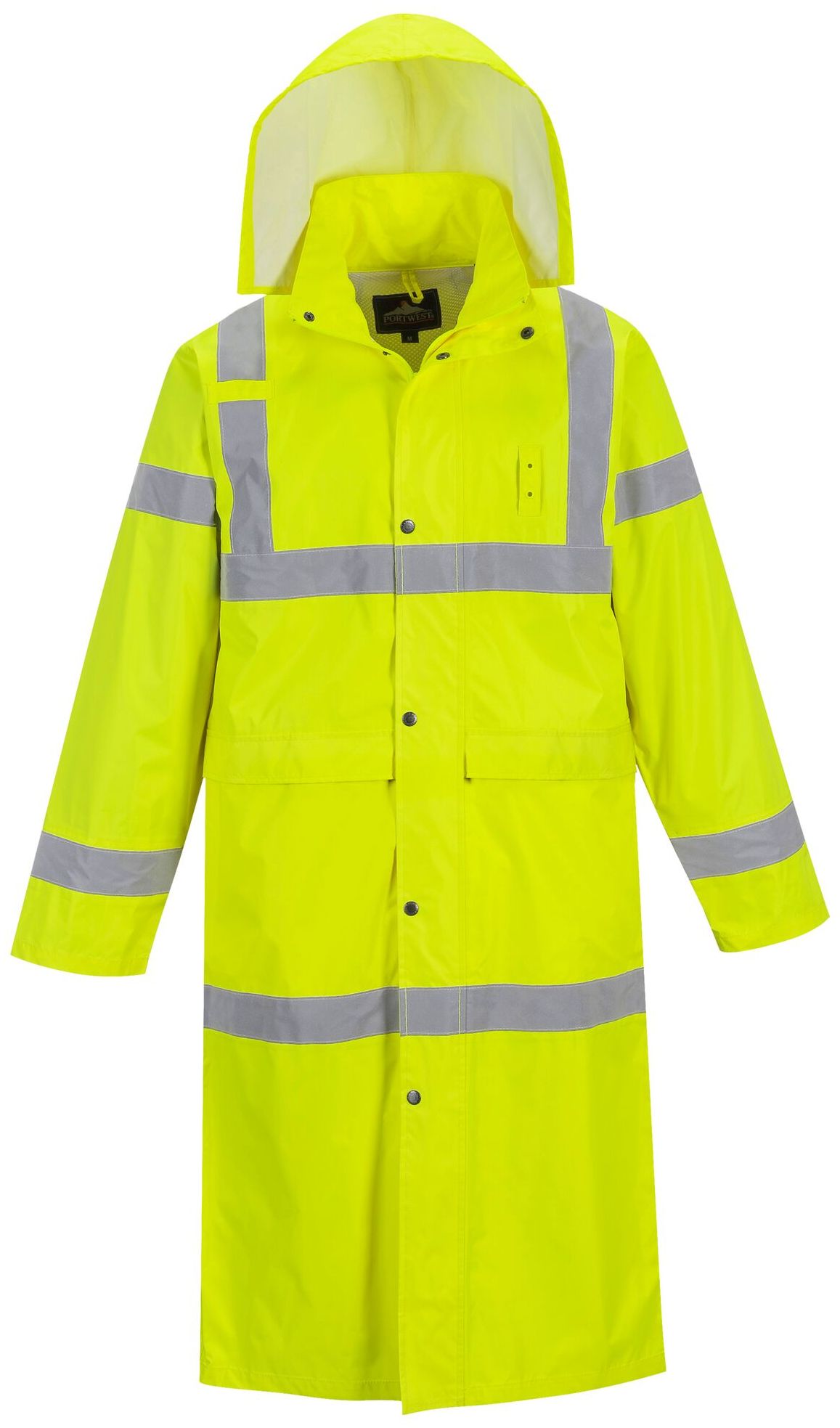 Portwest H445 Hi-Vis Coat 122cm SKU: WC-6919 Ship to Select country United Kingdom of Great Britain and Northern Ireland United States of America Afghanistan Åland Islands Albania Algeria American Samoa Andorra Angola Anguilla Antarctica Antigua and Barbuda Argentina Armenia Aruba Austria Azerbaijan Bahamas Bahrain Bangladesh Barbados Belarus Belgium Belize Benin Bermuda Bhutan Bolivia (Plurinational State of) Bonaire, Sint Eustatius and Saba Bosnia and Herzegovina Botswana Bouvet Island Brazil British Indian Ocean Territory Brunei Darussalam Bulgaria Burkina Faso Burundi Cabo Verde Cambodia Cameroon Canada Cayman Islands Central African Republic Chad Chile China Christmas Island Cocos (Keeling) Islands Colombia Comoros Congo Congo (Democratic Republic of the) Cook Islands Costa Rica Côte d'Ivoire Croatia Cuba Curaçao Cyprus Czechia Denmark Djibouti Dominica Dominican Republic Ecuador Egypt El Salvador Equatorial Guinea Eritrea Estonia Eswatini Ethiopia Falkland Islands (Malvinas) Faroe Islands Fiji Finland France French Guiana French Polynesia French Southern Territories Gabon Gambia Georgia Germany Ghana Gibraltar Greece Greenland Grenada Guadeloupe Guam Guatemala Guernsey Guinea Guinea-Bissau Guyana Haiti Heard Island and McDonald Islands Holy See Honduras Hong Kong Hungary Iceland India Indonesia Iran (Islamic Republic of) Iraq Ireland Isle of Man Israel Italy Jamaica Japan Jersey Jordan Kazakhstan Kenya Kiribati Korea (Democratic People's Republic of) Korea (Republic of) Kuwait Kyrgyzstan Lao People's Democratic Republic Latvia Lebanon Lesotho Liberia Libya Liechtenstein Lithuania Luxembourg Macao Madagascar Malawi Malaysia Maldives Mali Malta Marshall Islands Martinique Mauritania Mauritius Mayotte Mexico Micronesia (Federated States of) Moldova (Republic of) Monaco Mongolia Montenegro Montserrat Morocco Mozambique Myanmar Namibia Nauru Nepal Netherlands New Caledonia New Zealand Nicaragua Niger Nigeria Niue Norfolk Island North Macedonia Northern Mariana Islands Norway Oman Pakistan Palau Palestine, State of Panama Papua New Guinea Paraguay Peru Philippines Pitcairn Poland Portugal Puerto Rico Qatar Réunion Romania Russian Federation Rwanda Saint Barthélemy Saint Helena, Ascension and Tristan da Cunha Saint Kitts and Nevis Saint Lucia Saint Martin (French part) Saint Pierre and Miquelon Saint Vincent and the Grenadines Samoa San Marino Sao Tome and Principe Saudi Arabia Senegal Serbia Seychelles Sierra Leone Singapore Sint Maarten (Dutch part) Slovakia Slovenia Solomon Islands Somalia South Africa South Georgia and the South Sandwich Islands South Sudan Spain Sri Lanka Sudan Suriname Svalbard and Jan Mayen Sweden Switzerland Syrian Arab Republic Taiwan, Province of China Tajikistan Tanzania, United Republic of Thailand Timor-Leste Togo Tokelau Tonga Trinidad and Tobago Tunisia Turkey Turkmenistan Turks and Caicos Islands Tuvalu Uganda Ukraine United Arab Emirates United States Minor Outlying Islands Uruguay Uzbekistan Vanuatu Venezuela (Bolivarian Republic of) Vietnam Virgin Islands (British) Virgin Islands (U.S.) Wallis and Futuna Western Sahara Yemen Zambia Zimbabwe * Other * Shipping Method Name Estimated Delivery Price No shipping options Apply Email a friend Cleverly designed with an extra long length of 122cm, this coat ensures total protection in adverse weather conditions and offers exceptional value for money. This lightweight coat features a pack-away hood, stud and zip storm flap, large pockets for ample storage, a radio loop and a badge holder. \n \n- CE certified \n- Reflective tape for increased visibility \n- 2 pockets for secure storage \n- Deep storage pockets \n- Pack away hood for added functionality \n- Inner elasticated cuff \n- Radio loop for easy clipping of a radio \n- Badge holder for easy clipping of your ID card \n- 50+ UPF rated fabric to block 98% of UV rays \n- Extra protection against the cold with an extended 122cm back \n- Extremely water resistant fabric finish, water beads away from fabric surface \n \nColours: Yellow \n \nSizes: Reg S - 5XL \n \n- ANSI/ISEA 107-2015 TYPE R CLASS 3 \n- EN ISO 20471 Class 3 \n- EN 343 Class 3:1