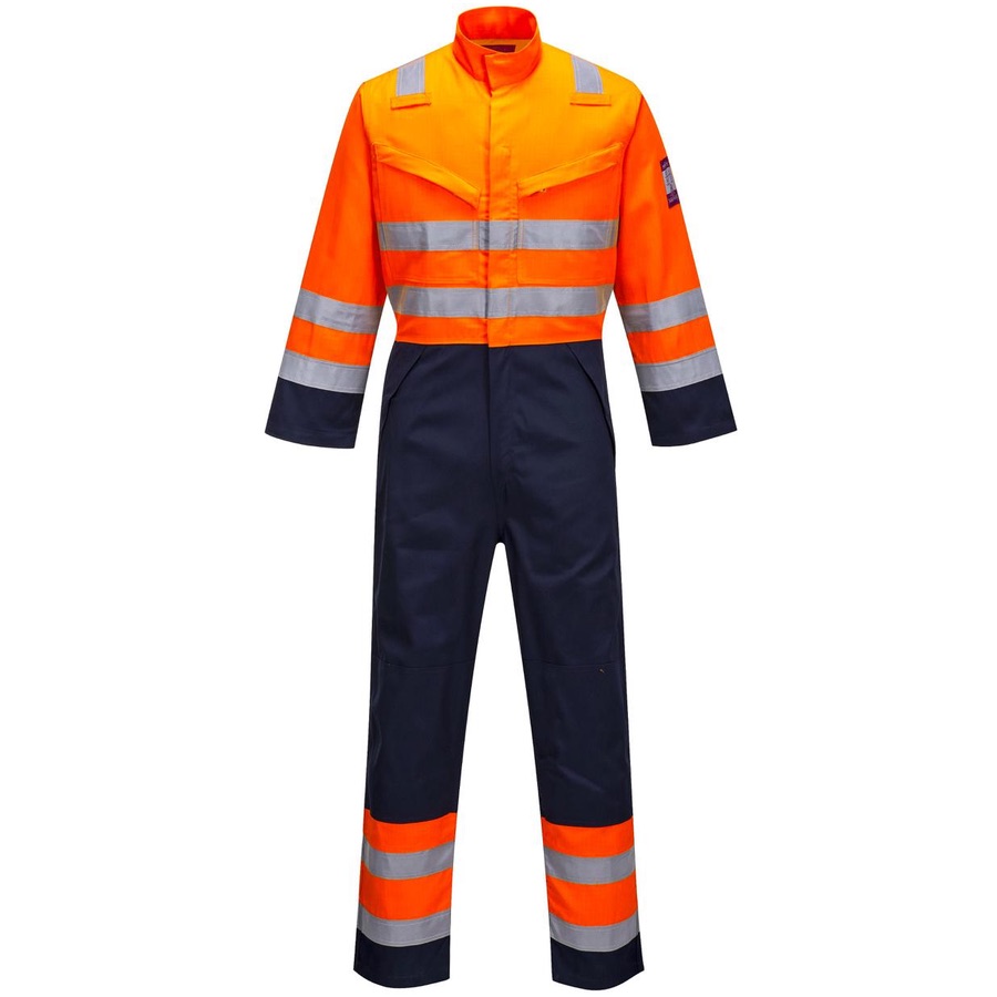 Portwest MV29 Modaflame RIS Navy/Orange Coverall SKU: WC-6752 Ship to Select country United Kingdom of Great Britain and Northern Ireland United States of America Afghanistan Åland Islands Albania Algeria American Samoa Andorra Angola Anguilla Antarctica Antigua and Barbuda Argentina Armenia Aruba Austria Azerbaijan Bahamas Bahrain Bangladesh Barbados Belarus Belgium Belize Benin Bermuda Bhutan Bolivia (Plurinational State of) Bonaire, Sint Eustatius and Saba Bosnia and Herzegovina Botswana Bouvet Island Brazil British Indian Ocean Territory Brunei Darussalam Bulgaria Burkina Faso Burundi Cabo Verde Cambodia Cameroon Canada Cayman Islands Central African Republic Chad Chile China Christmas Island Cocos (Keeling) Islands Colombia Comoros Congo Congo (Democratic Republic of the) Cook Islands Costa Rica Côte d'Ivoire Croatia Cuba Curaçao Cyprus Czechia Denmark Djibouti Dominica Dominican Republic Ecuador Egypt El Salvador Equatorial Guinea Eritrea Estonia Eswatini Ethiopia Falkland Islands (Malvinas) Faroe Islands Fiji Finland France French Guiana French Polynesia French Southern Territories Gabon Gambia Georgia Germany Ghana Gibraltar Greece Greenland Grenada Guadeloupe Guam Guatemala Guernsey Guinea Guinea-Bissau Guyana Haiti Heard Island and McDonald Islands Holy See Honduras Hong Kong Hungary Iceland India Indonesia Iran (Islamic Republic of) Iraq Ireland Isle of Man Israel Italy Jamaica Japan Jersey Jordan Kazakhstan Kenya Kiribati Korea (Democratic People's Republic of) Korea (Republic of) Kuwait Kyrgyzstan Lao People's Democratic Republic Latvia Lebanon Lesotho Liberia Libya Liechtenstein Lithuania Luxembourg Macao Madagascar Malawi Malaysia Maldives Mali Malta Marshall Islands Martinique Mauritania Mauritius Mayotte Mexico Micronesia (Federated States of) Moldova (Republic of) Monaco Mongolia Montenegro Montserrat Morocco Mozambique Myanmar Namibia Nauru Nepal Netherlands New Caledonia New Zealand Nicaragua Niger Nigeria Niue Norfolk Island North Macedonia Northern Mariana Islands Norway Oman Pakistan Palau Palestine, State of Panama Papua New Guinea Paraguay Peru Philippines Pitcairn Poland Portugal Puerto Rico Qatar Réunion Romania Russian Federation Rwanda Saint Barthélemy Saint Helena, Ascension and Tristan da Cunha Saint Kitts and Nevis Saint Lucia Saint Martin (French part) Saint Pierre and Miquelon Saint Vincent and the Grenadines Samoa San Marino Sao Tome and Principe Saudi Arabia Senegal Serbia Seychelles Sierra Leone Singapore Sint Maarten (Dutch part) Slovakia Slovenia Solomon Islands Somalia South Africa South Georgia and the South Sandwich Islands South Sudan Spain Sri Lanka Sudan Suriname Svalbard and Jan Mayen Sweden Switzerland Syrian Arab Republic Taiwan, Province of China Tajikistan Tanzania, United Republic of Thailand Timor-Leste Togo Tokelau Tonga Trinidad and Tobago Tunisia Turkey Turkmenistan Turks and Caicos Islands Tuvalu Uganda Ukraine United Arab Emirates United States Minor Outlying Islands Uruguay Uzbekistan Vanuatu Venezuela (Bolivarian Republic of) Vietnam Virgin Islands (British) Virgin Islands (U.S.) Wallis and Futuna Western Sahara Yemen Zambia Zimbabwe * Other * Shipping Method Name Estimated Delivery Price No shipping options Apply Email a friend This coverall is ideal for use in multi-risk settings offering maximum protection against a range of hazards. Fully certified to RIS and EN ISO 20471 this item is perfect for track side use. The two tone design is stylish and ideal for minimizing dirt and stains. \n \n- CE certified \n- Inherent flame resistant qualities will not diminish with washing \n- Flame resistant industrial wash tape \n- Protection against radiant, convective and contact heat \n- Certified protection against molten metal splash \n- Texpel stain resistant finish repels dirt and stains \n- Radio loops for easy clipping of a radio \n- Rule pocket \n- 8 pockets for ample storage \n- Two tier knee pad pockets allowing two positioning options \n- Hook and loop cuffs for a secure fit \n- Concealed two-way front brass zip \n- 50+ UPF rated fabric to block 98% of UV rays \n- Action back for extra freedom of movement \n- Side elastic waist for ultimate wearer comfort \n- *Registered European Community Design \n \nColours: Orange/Navy \n \nSizes: Reg S - 3XL \n \n- EN ISO 11612 (A1+A2. B1. C1. F1) \n- EN ISO 11611 Class 1 (A1+A2) \n- EN 1149 -5 \n- EN ISO 20471 Class 3 \n- IEC 61482-2 IEC 61482-1-2 Class 1 \n- EN 13034 Type 6 \n- RIS-3279-TOM ISSUE 1 (ORANGE ONLY) \n- GO/RT 3279 Issue 8