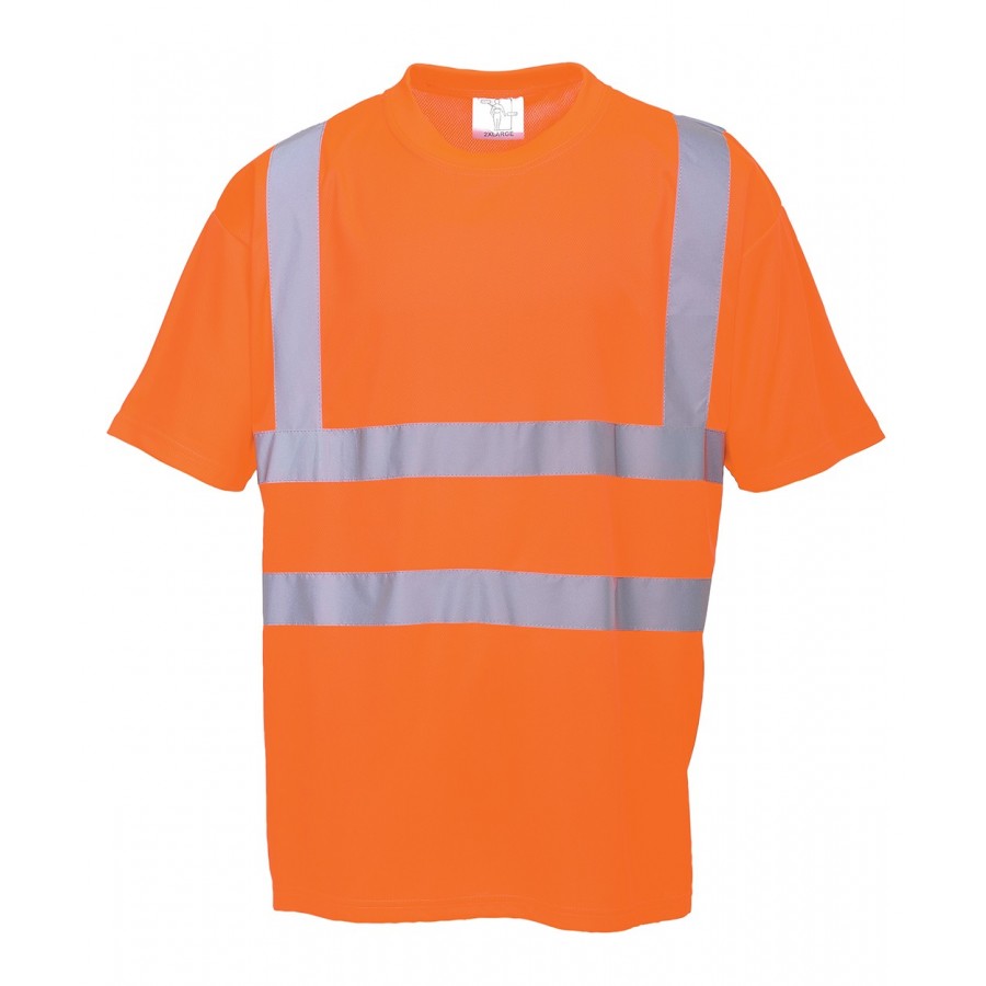 Portwest RT23 Hi-Vis RIS T-Shirt SKU: WC-6543 Ship to Select country United Kingdom of Great Britain and Northern Ireland United States of America Afghanistan Åland Islands Albania Algeria American Samoa Andorra Angola Anguilla Antarctica Antigua and Barbuda Argentina Armenia Aruba Austria Azerbaijan Bahamas Bahrain Bangladesh Barbados Belarus Belgium Belize Benin Bermuda Bhutan Bolivia (Plurinational State of) Bonaire, Sint Eustatius and Saba Bosnia and Herzegovina Botswana Bouvet Island Brazil British Indian Ocean Territory Brunei Darussalam Bulgaria Burkina Faso Burundi Cabo Verde Cambodia Cameroon Canada Cayman Islands Central African Republic Chad Chile China Christmas Island Cocos (Keeling) Islands Colombia Comoros Congo Congo (Democratic Republic of the) Cook Islands Costa Rica Côte d'Ivoire Croatia Cuba Curaçao Cyprus Czechia Denmark Djibouti Dominica Dominican Republic Ecuador Egypt El Salvador Equatorial Guinea Eritrea Estonia Eswatini Ethiopia Falkland Islands (Malvinas) Faroe Islands Fiji Finland France French Guiana French Polynesia French Southern Territories Gabon Gambia Georgia Germany Ghana Gibraltar Greece Greenland Grenada Guadeloupe Guam Guatemala Guernsey Guinea Guinea-Bissau Guyana Haiti Heard Island and McDonald Islands Holy See Honduras Hong Kong Hungary Iceland India Indonesia Iran (Islamic Republic of) Iraq Ireland Isle of Man Israel Italy Jamaica Japan Jersey Jordan Kazakhstan Kenya Kiribati Korea (Democratic People's Republic of) Korea (Republic of) Kuwait Kyrgyzstan Lao People's Democratic Republic Latvia Lebanon Lesotho Liberia Libya Liechtenstein Lithuania Luxembourg Macao Madagascar Malawi Malaysia Maldives Mali Malta Marshall Islands Martinique Mauritania Mauritius Mayotte Mexico Micronesia (Federated States of) Moldova (Republic of) Monaco Mongolia Montenegro Montserrat Morocco Mozambique Myanmar Namibia Nauru Nepal Netherlands New Caledonia New Zealand Nicaragua Niger Nigeria Niue Norfolk Island North Macedonia Northern Mariana Islands Norway Oman Pakistan Palau Palestine, State of Panama Papua New Guinea Paraguay Peru Philippines Pitcairn Poland Portugal Puerto Rico Qatar Réunion Romania Russian Federation Rwanda Saint Barthélemy Saint Helena, Ascension and Tristan da Cunha Saint Kitts and Nevis Saint Lucia Saint Martin (French part) Saint Pierre and Miquelon Saint Vincent and the Grenadines Samoa San Marino Sao Tome and Principe Saudi Arabia Senegal Serbia Seychelles Sierra Leone Singapore Sint Maarten (Dutch part) Slovakia Slovenia Solomon Islands Somalia South Africa South Georgia and the South Sandwich Islands South Sudan Spain Sri Lanka Sudan Suriname Svalbard and Jan Mayen Sweden Switzerland Syrian Arab Republic Taiwan, Province of China Tajikistan Tanzania, United Republic of Thailand Timor-Leste Togo Tokelau Tonga Trinidad and Tobago Tunisia Turkey Turkmenistan Turks and Caicos Islands Tuvalu Uganda Ukraine United Arab Emirates United States Minor Outlying Islands Uruguay Uzbekistan Vanuatu Venezuela (Bolivarian Republic of) Vietnam Virgin Islands (British) Virgin Islands (U.S.) Wallis and Futuna Western Sahara Yemen Zambia Zimbabwe * Other * Shipping Method Name Estimated Delivery Price No shipping options Apply Email a friend Rail specification T-Shirt that combines high visibility protection and unbeatable comfort. Ideal for the summer months and indoor work, this T-Shirt is fully certified to RIS 3279. \n \n- Breathable fabric to draw moisture away from the body keeping the wearer cool, dry and comfortable \n- Quality wicking fabric finish enhances fabric drying and aids stain removal \n- Reflective tape for increased visibility \n- 50+ UPF rated fabric to block 98% of UV rays \n- Crew neck \n- Generous fit for wearer comfort \n- Certified to EN ISO 20471 after 50x washes \n- Complies with RIS 3279-TOM for rail industry (orange only) \n- CE certified \n \nColours: Orange \n \nSizes: Short XS - 5XL \n \n- ANSI/ISEA 107-2015 TYPE R CLASS 2 \n- AS/NZS 4602.1:2011 Class D/N \n- RIS-3279-TOM ISSUE 1 (ORANGE ONLY) \n- EN ISO 20471 Class 2 \n- GO/RT 3279 Issue 8