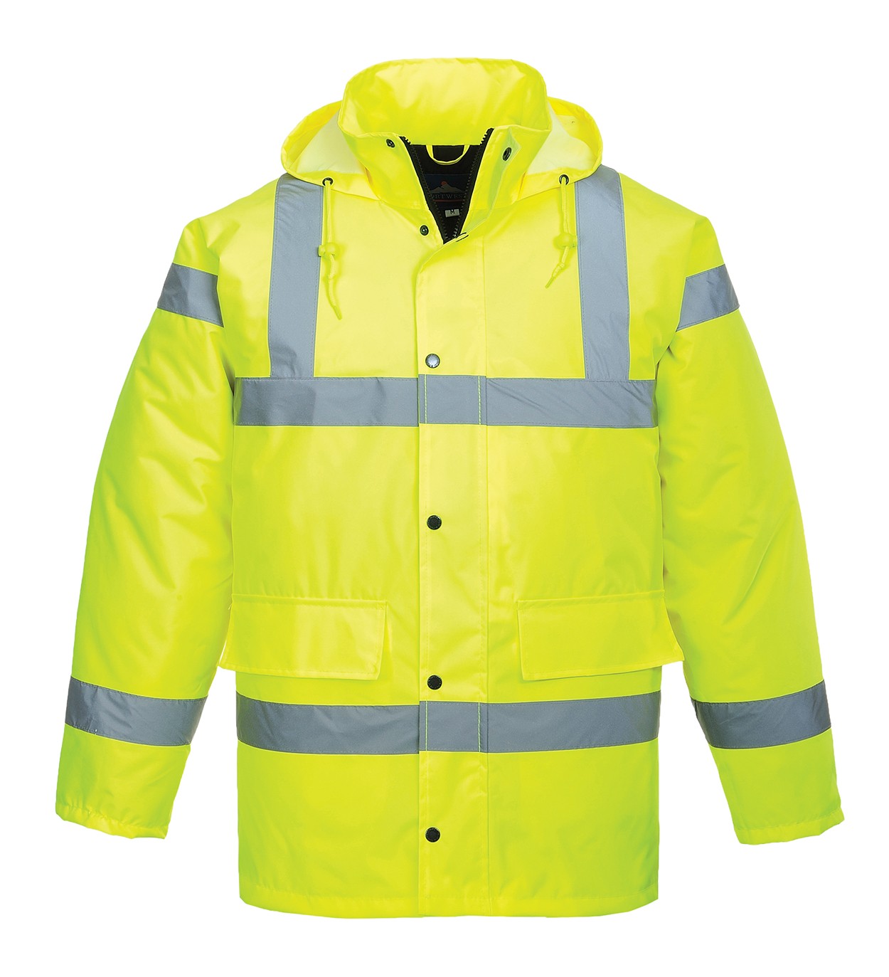 Portwest S460 Hi-Vis Traffic Jacket SKU: WC-6970 Ship to Select country United Kingdom of Great Britain and Northern Ireland United States of America Afghanistan Åland Islands Albania Algeria American Samoa Andorra Angola Anguilla Antarctica Antigua and Barbuda Argentina Armenia Aruba Austria Azerbaijan Bahamas Bahrain Bangladesh Barbados Belarus Belgium Belize Benin Bermuda Bhutan Bolivia (Plurinational State of) Bonaire, Sint Eustatius and Saba Bosnia and Herzegovina Botswana Bouvet Island Brazil British Indian Ocean Territory Brunei Darussalam Bulgaria Burkina Faso Burundi Cabo Verde Cambodia Cameroon Canada Cayman Islands Central African Republic Chad Chile China Christmas Island Cocos (Keeling) Islands Colombia Comoros Congo Congo (Democratic Republic of the) Cook Islands Costa Rica Côte d'Ivoire Croatia Cuba Curaçao Cyprus Czechia Denmark Djibouti Dominica Dominican Republic Ecuador Egypt El Salvador Equatorial Guinea Eritrea Estonia Eswatini Ethiopia Falkland Islands (Malvinas) Faroe Islands Fiji Finland France French Guiana French Polynesia French Southern Territories Gabon Gambia Georgia Germany Ghana Gibraltar Greece Greenland Grenada Guadeloupe Guam Guatemala Guernsey Guinea Guinea-Bissau Guyana Haiti Heard Island and McDonald Islands Holy See Honduras Hong Kong Hungary Iceland India Indonesia Iran (Islamic Republic of) Iraq Ireland Isle of Man Israel Italy Jamaica Japan Jersey Jordan Kazakhstan Kenya Kiribati Korea (Democratic People's Republic of) Korea (Republic of) Kuwait Kyrgyzstan Lao People's Democratic Republic Latvia Lebanon Lesotho Liberia Libya Liechtenstein Lithuania Luxembourg Macao Madagascar Malawi Malaysia Maldives Mali Malta Marshall Islands Martinique Mauritania Mauritius Mayotte Mexico Micronesia (Federated States of) Moldova (Republic of) Monaco Mongolia Montenegro Montserrat Morocco Mozambique Myanmar Namibia Nauru Nepal Netherlands New Caledonia New Zealand Nicaragua Niger Nigeria Niue Norfolk Island North Macedonia Northern Mariana Islands Norway Oman Pakistan Palau Palestine, State of Panama Papua New Guinea Paraguay Peru Philippines Pitcairn Poland Portugal Puerto Rico Qatar Réunion Romania Russian Federation Rwanda Saint Barthélemy Saint Helena, Ascension and Tristan da Cunha Saint Kitts and Nevis Saint Lucia Saint Martin (French part) Saint Pierre and Miquelon Saint Vincent and the Grenadines Samoa San Marino Sao Tome and Principe Saudi Arabia Senegal Serbia Seychelles Sierra Leone Singapore Sint Maarten (Dutch part) Slovakia Slovenia Solomon Islands Somalia South Africa South Georgia and the South Sandwich Islands South Sudan Spain Sri Lanka Sudan Suriname Svalbard and Jan Mayen Sweden Switzerland Syrian Arab Republic Taiwan, Province of China Tajikistan Tanzania, United Republic of Thailand Timor-Leste Togo Tokelau Tonga Trinidad and Tobago Tunisia Turkey Turkmenistan Turks and Caicos Islands Tuvalu Uganda Ukraine United Arab Emirates United States Minor Outlying Islands Uruguay Uzbekistan Vanuatu Venezuela (Bolivarian Republic of) Vietnam Virgin Islands (British) Virgin Islands (U.S.) Wallis and Futuna Western Sahara Yemen Zambia Zimbabwe * Other * Shipping Method Name Estimated Delivery Price No shipping options Apply Email a friend This fully certified waterproof jacket is a popular option across many industries. Hard-wearing, functional and packed full of features including a drawstring hood, studded storm flap and multiple storage pockets. \n \n- CE certified \n- Waterproof with taped seams preventing water penetration \n- Extremely water resistant fabric finish, water beads away from fabric surface \n- Reflective tape for increased visibility \n- Fully lined and padded to trap the heat and increase warmth \n- Two-way zip for quick and easy access \n- 4 pockets for ample storage \n- Concealed phone pocket \n- Internal chest pocket \n- Pack away hood for added functionality \n- Inner ribbed cuffs for warmth and comfort \n- 50+ UPF rated fabric to block 98% of UV rays \n- Certified to EN ISO 20471 after 50x washes \n- Bio motion tape pattern to improve recognition of human shape at distance \n- Wind resistant to protect against wind chill \n \nColours: Yellow, Orange \n \nSizes: \n \nYellow Reg XXS - 8XL \nOrange Reg S - 5XL \n \n- ANSI/ISEA 107-2015 TYPE R CLASS 3 \n- AS/NZS 4602.1:2011 Class D/N \n- RIS-3279-TOM ISSUE 1 (ORANGE ONLY) \n- GO/RT 3279 Issue 8 \n- EN ISO 20471 Class 3 \n- EN 343 Class 3:1 \n- EN 342 (0.503M2. K/W(B). X. 3. 2)